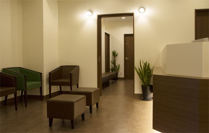 当クリニックは予約制ですので待ち時間は長くならないシステムですが、少しの時間お待ちいただく場合でも、ゆったりとお過ごしいただけるよう配慮した造りとなっております。